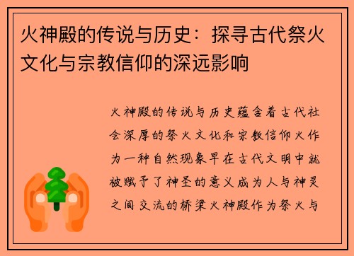 火神殿的传说与历史:探寻古代祭火文化与宗教信仰的深远影响