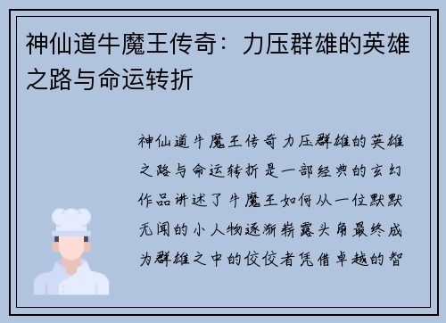 神仙道牛魔王传奇:力压群雄的英雄之路与命运转折