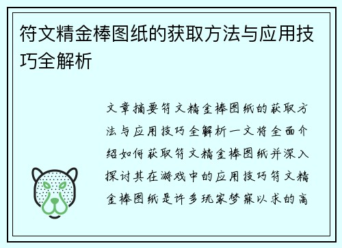 符文精金棒图纸的获取方法与应用技巧全解析